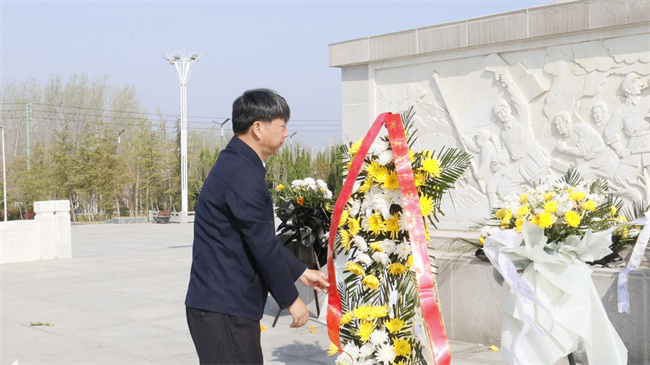 伴隨著深情的《獻(xiàn)花曲》,黨員代表向烈士們敬獻(xiàn)花籃,公司黨委書(shū)記趙廣良同志仔細(xì)整理花籃綬帶,以此表示對(duì)烈士的深切追思。隨后,全體人員緩步繞行一周,滿懷崇敬瞻仰革命烈士紀(jì)念碑,向革命烈士致以崇高敬意。