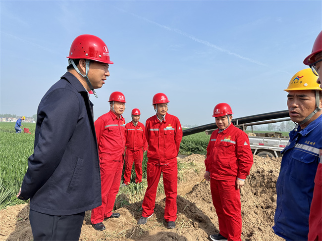 4月13日,周口市天然氣有限公司董事長趙廣良一行到鹿邑縣天然氣有限公司在建工程施工現(xiàn)場調(diào)研,副總經(jīng)理余強(qiáng)、王繼領(lǐng),總工程師王國廠,工程管理中心經(jīng)理韓海南陪同調(diào)研。