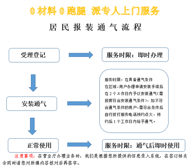 預(yù)約通氣點(diǎn)火:對(duì)已具備安全通氣條件并辦結(jié)相關(guān)手續(xù)的客戶,在1個(gè)自然日內(nèi)提供上門服務(wù);