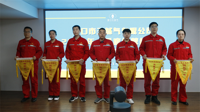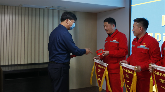 會(huì)上進(jìn)行了紅黃旗交接儀式,董事長(zhǎng)趙廣良為獲得紅旗單位頒發(fā)獎(jiǎng)金